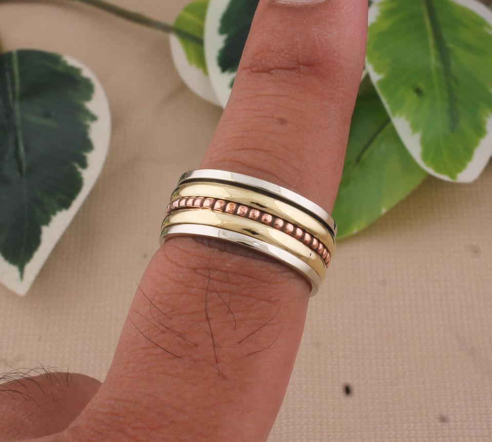 Handmade Classic Women's Sterling Silver Copper Brass Mixed Metal Two-Tone Band Artisan Jewelry Wholesale