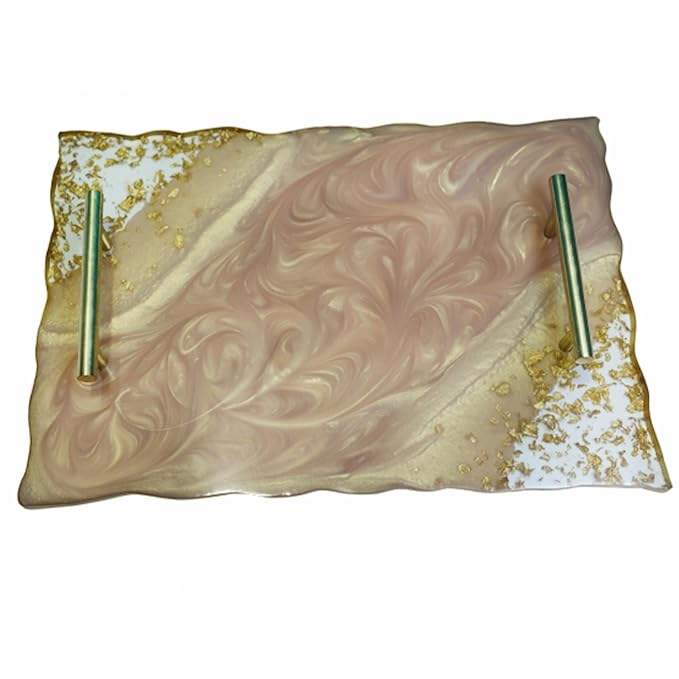 ถาดเสิร์ฟกาแฟอะคริลิคทรงสี่เหลี่ยมผืนผ้าใสทำด้วยมือพร้อมด้ามจับกันหกทำจากเรซินสำหรับตกแต่งโรงแรมสำหรับเสิร์ฟชาอาหารกาแฟ