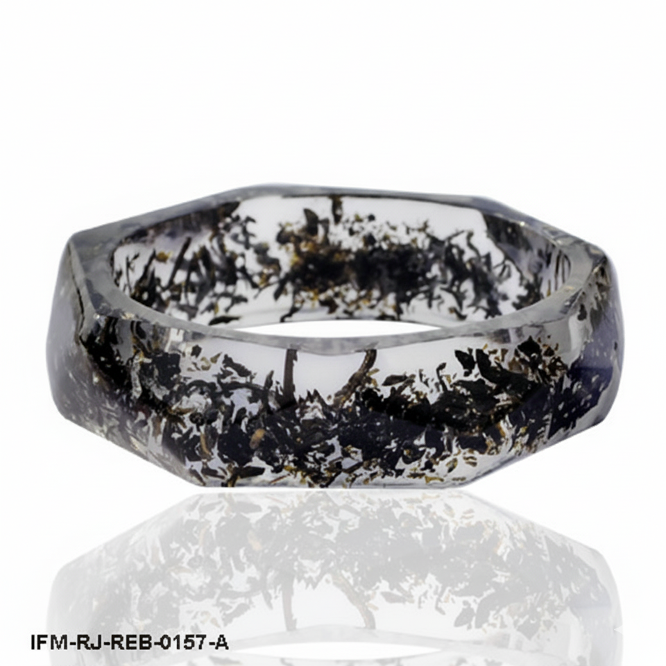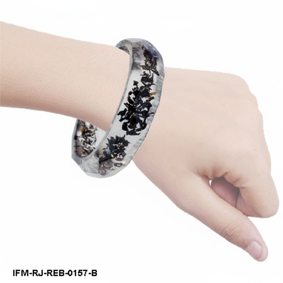 กำไลข้อมือเรซิ่นใสทำมือ ประดับด้วยเกล็ดสีดำ รูปทรงหกเหลี่ยม สำหรับผู้หญิง