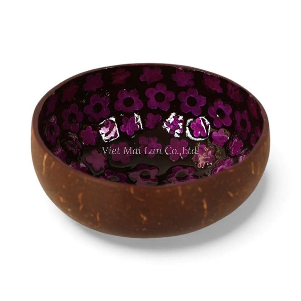 ชามมะพร้าวทำมือ ลายเคลือบมุกธรรมชาติ ฝังเปลือกหอย เป็นมิตรกับสิ่งแวดล้อม สำหรับตกแต่งบ้าน