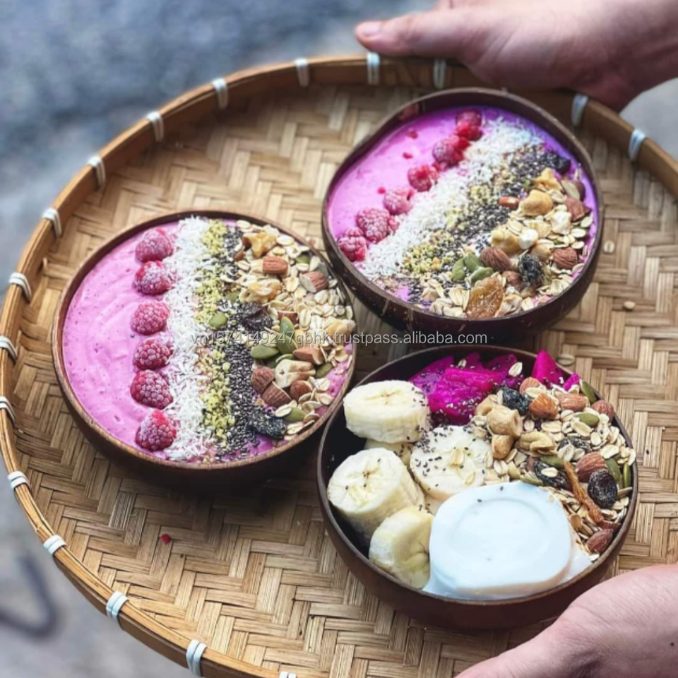ชุดชามมะพร้าวทำด้วยมือเป็นมิตรกับสิ่งแวดล้อมธรรมชาติเคลือบเงาเสร็จสิ้นปรับแต่งเทคนิคการเดินทางร้อนขายส่งจากเวียดนาม