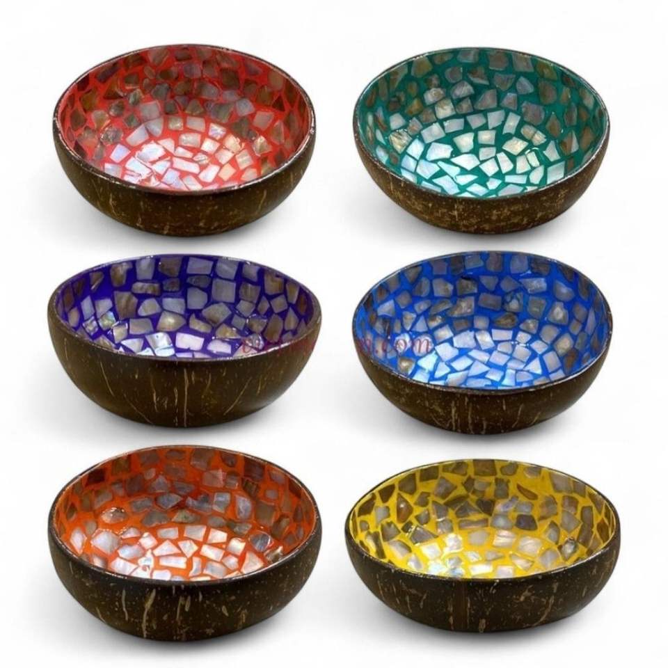 ชามมะพร้าวทำมือฝังมุกสำหรับเสิร์ฟอาหารบนโต๊ะอาหารจากเวียดนาม