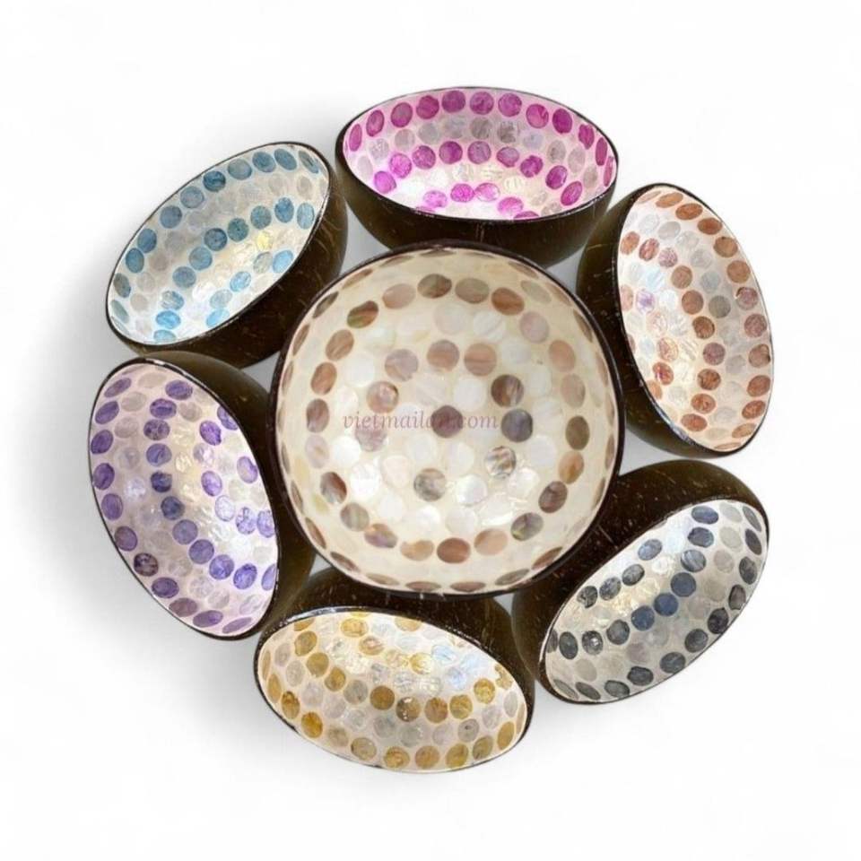 ชามกะลามะพร้าวทำมือ ประดับมุก ขายส่ง รับทำลวดลายตามสั่ง เวียดนาม