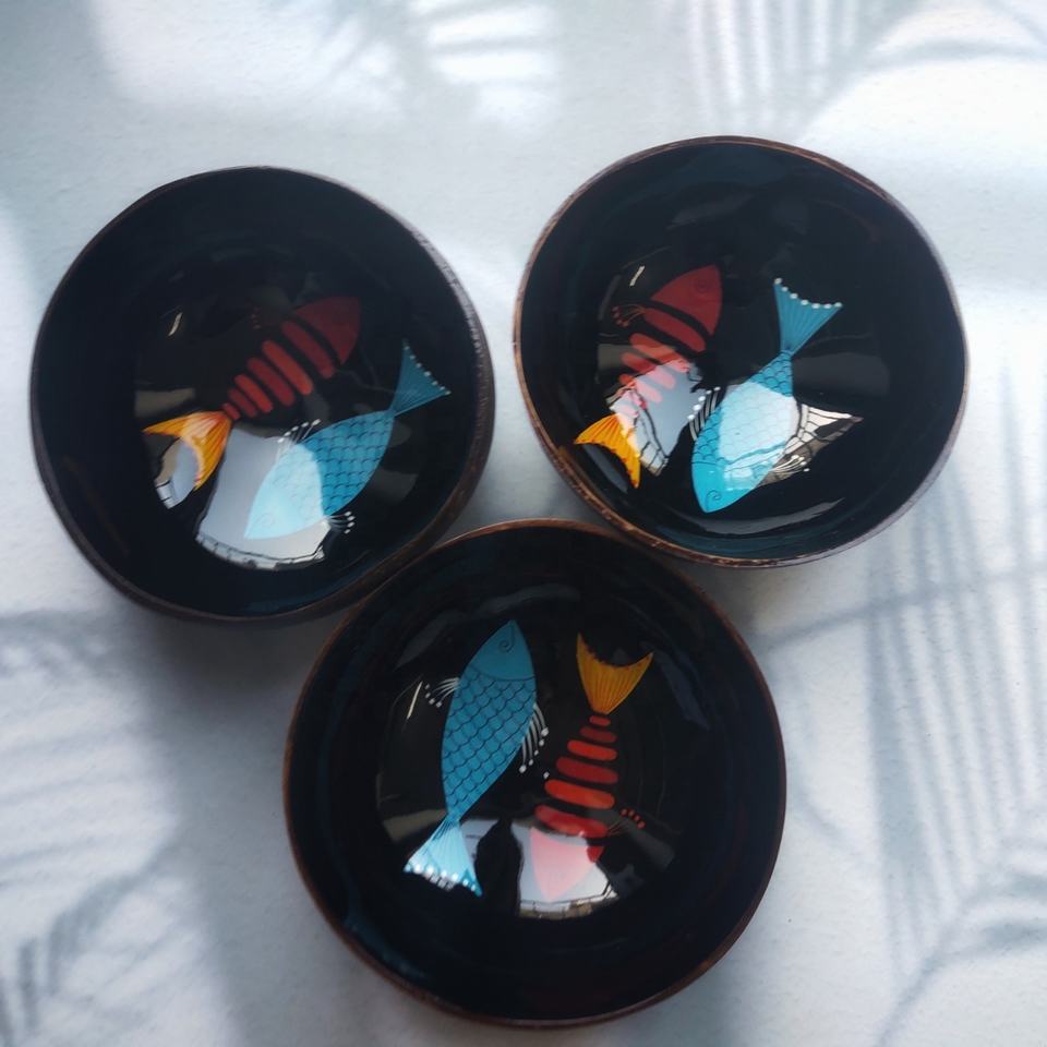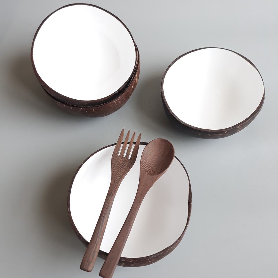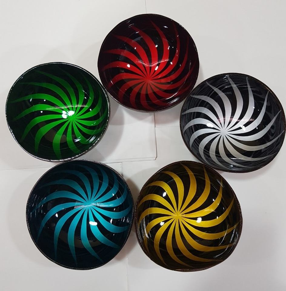 ชามกะลามะพร้าวทำด้วยมือเป็นมิตรกับสิ่งแวดล้อมจานเสิร์ฟอาหารเคลือบธรรมชาติตกแต่งมินิมอลสำหรับการตั้งแคมป์สูง