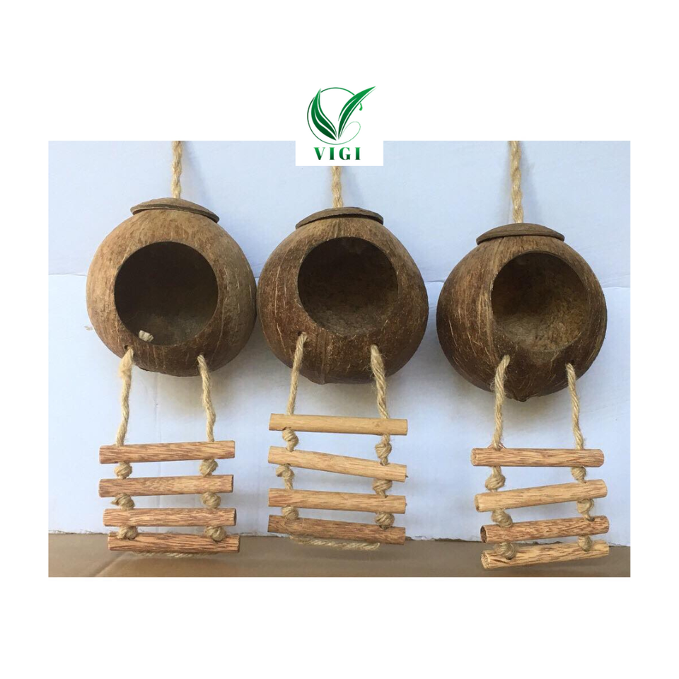 ที่พักพิงสำหรับสัตว์เลี้ยงเปลือกมะพร้าวทำด้วยมือบ้านทำรังนกสำหรับแฮมสเตอร์นกแก้วฟินช์สั่งซื้อจำนวนมาก