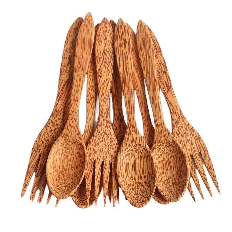 ชุดช้อนส้อมไม้มะพร้าวทำมือ ดีไซน์โค้งมน สวยงาม ลายไม้ธรรมชาติ บรรจุภัณฑ์รักษ์โลก ปราศจากขยะ