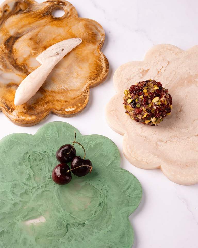 Handmade Collection Trendy Green Resin Cheese Tools Set Eco-Friendly Dishwasher Microwave Safe Durable Butter Cutter Fruit Fork