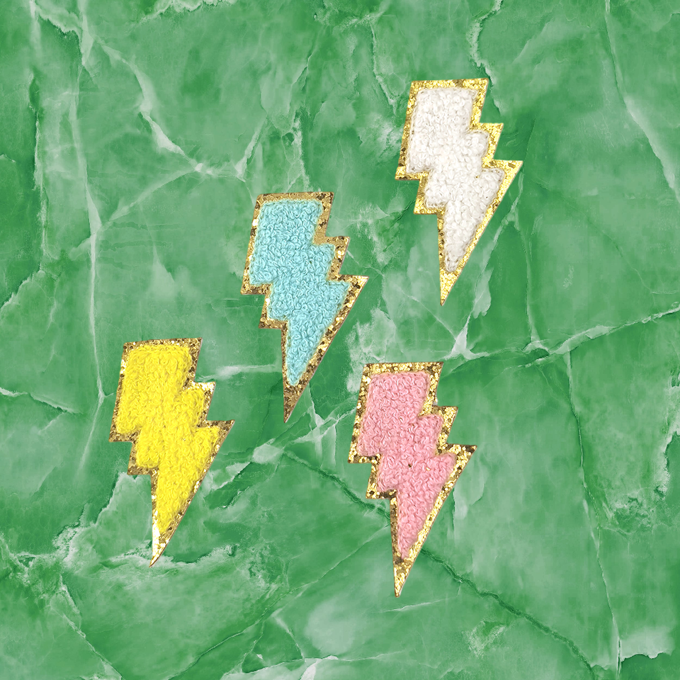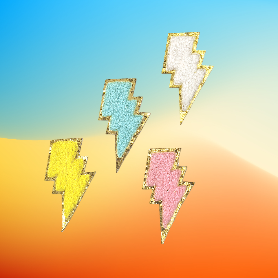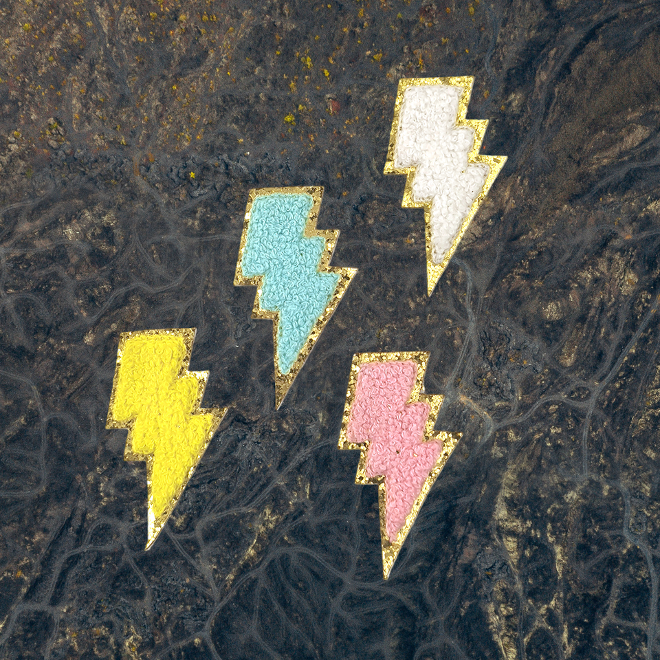 แผ่นปะติดผ้ากำมะหยี่ลายสายฟ้าปักสีสันสดใส ทำมือ ติดเองได้ สำหรับหมวก