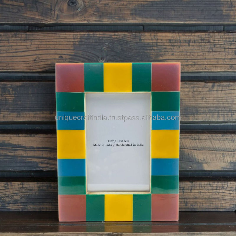 กรอบรูปไม้ฝังเรซิ่นสีสันสดใส งานแฮนด์เมด ดีไซน์เรขาคณิต สำหรับตั้งโต๊ะ ตกแต่งบ้านสไตล์โมเดิร์น