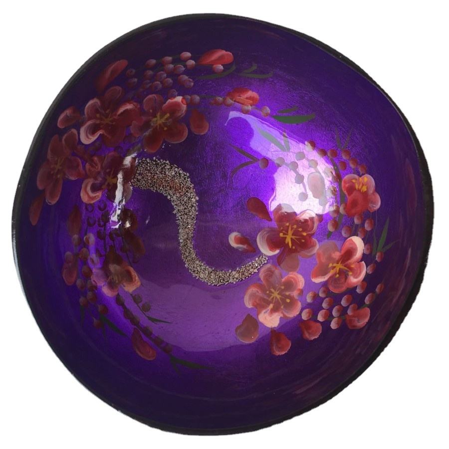 ชุดชามมะพร้าวเปลือกหอยหลากสีทำด้วยมือเคลือบแล็กเกอร์เวียดนามพร้อมลายดอกไม้น้ำหนักเบาทนทานสำหรับใช้ในอาหารเย็น