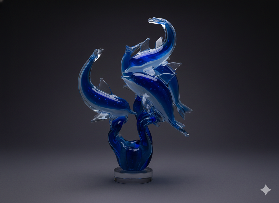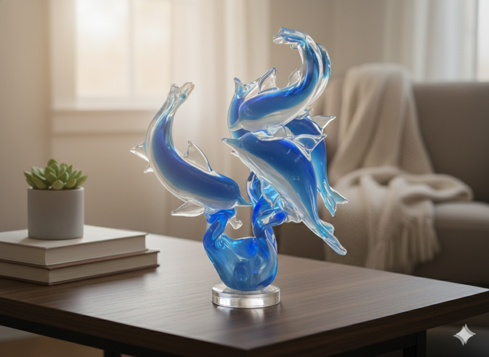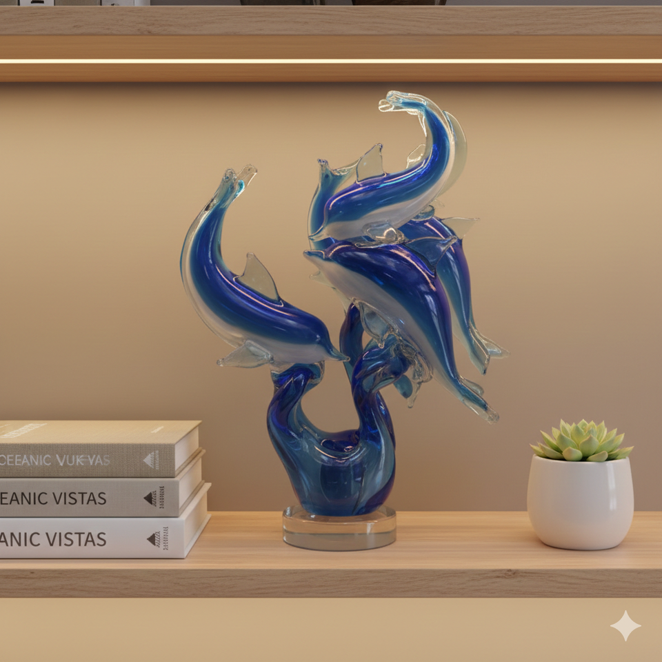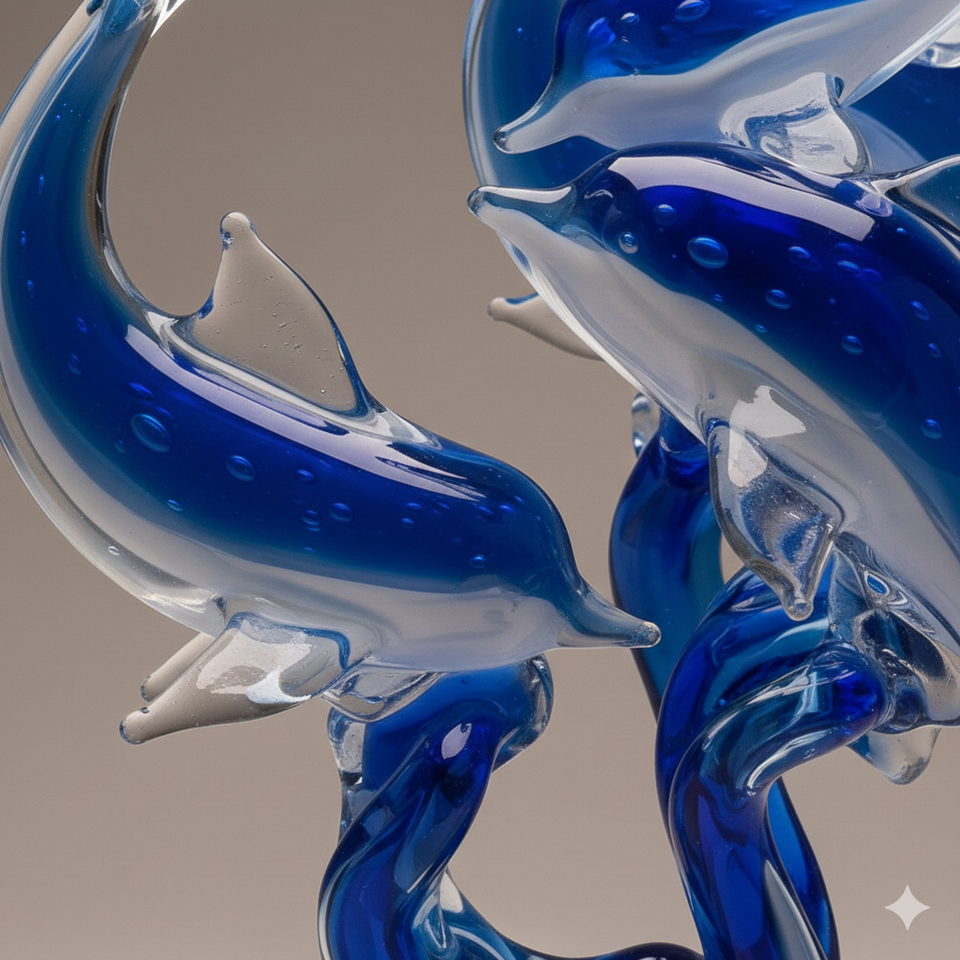 Handmade Contemporary Borosilicate Glass Dolphin Couple Figurine Custom Colors Tabletop Home Decor Ornament Wholesale Packaging