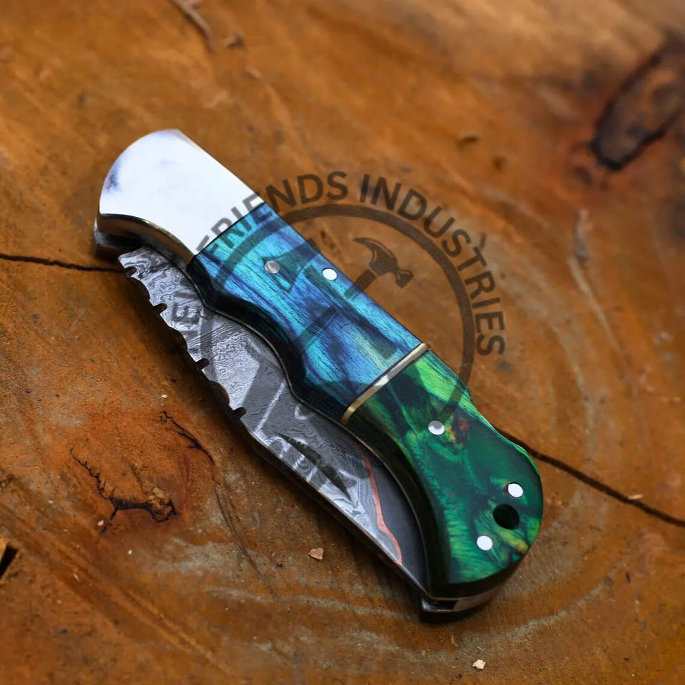 มีดพับเหล็กดามัสกัสทำด้วยมือพับได้ทำด้วยมือของขวัญวันครบรอบงานแต่งสำหรับตั้งแคมป์