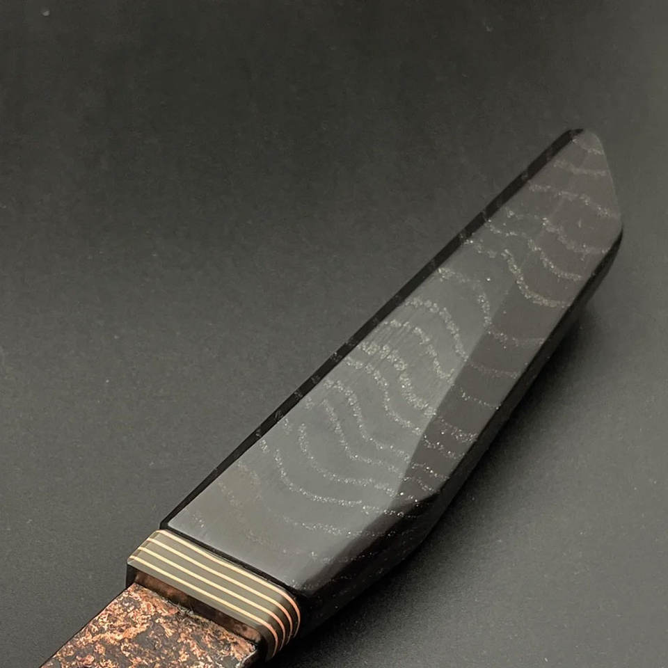 มีดอเนกประสงค์ทำมือจากเหล็กดามัสกัสทองแดง ลายแบบสั่งทำพิเศษ พร้อมด้ามจับดีไซน์สวยงาม