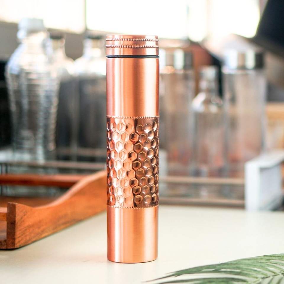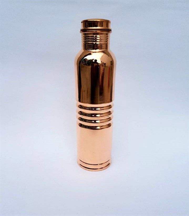 ขวดน้ำทองแดงทำมือ ขวดน้ำทองแดงขัดเงา ขวดน้ำทองแดงแบบดั้งเดิมของอินเดีย ทำด้วยมือ