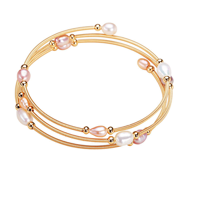 กำไลข้อมือทองแดงชุบทองคำทำมือ ดีไซน์เรียบหรู ประดับมุกน้ำจืดจูจี้ทรงหยดน้ำ แฟชั่นทันสมัย