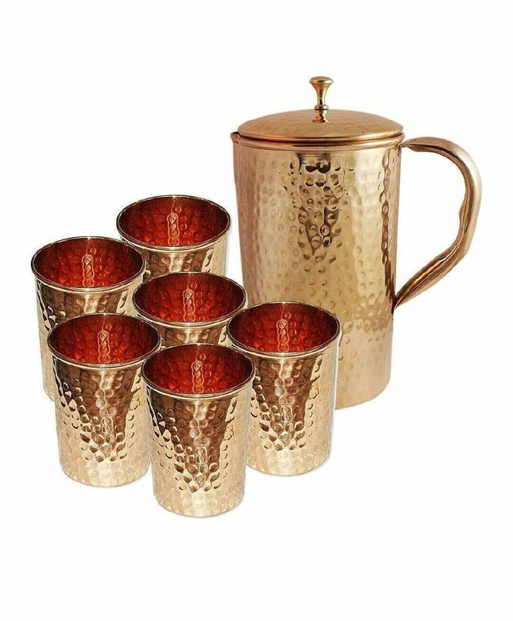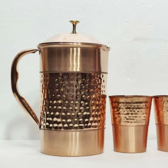 เหยือกทองแดงทำมือ สไตล์หรูหรา สีโรสโกลด์ เหยือกทองแดงสำหรับโต๊ะอาหาร เหยือกเสิร์ฟน้ำ ดีไซน์ลายตอก