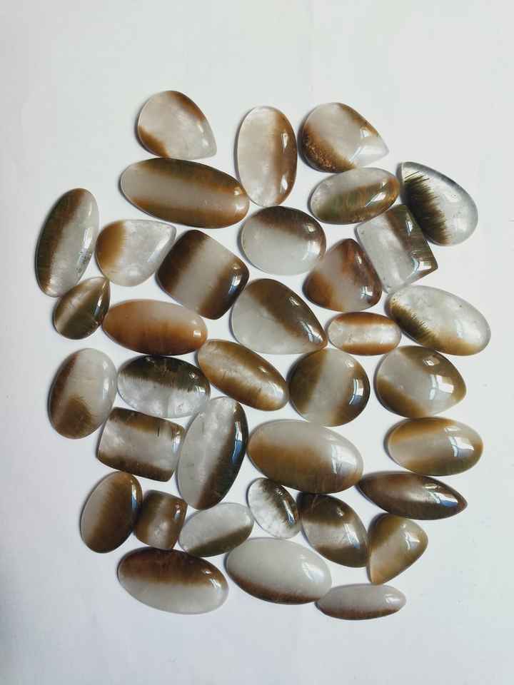 2024ทำด้วยมือทองแดง rutile Cabochon จี้สร้อยคอที่น่าตื่นตาตื่นใจแบนกลับพลอยควอตซ์ธรรมชาติอัญมณีหลวม