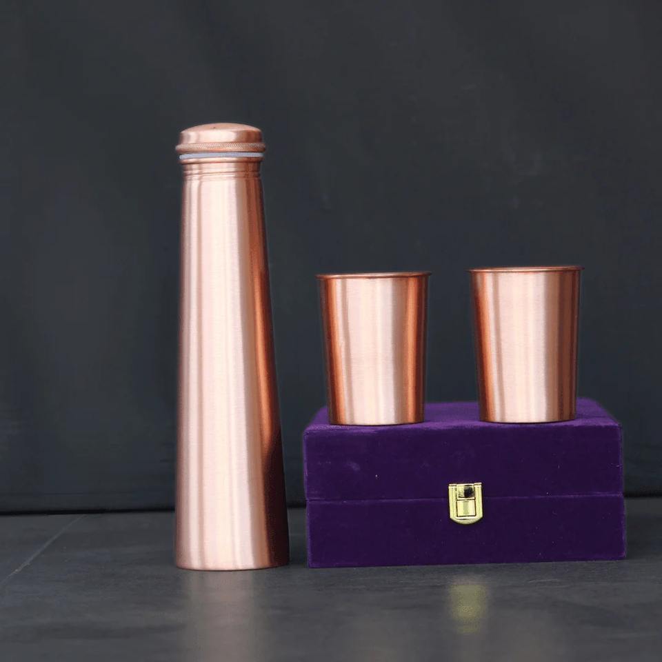ชุดขวดน้ำทองแดงทำมือ พร้อมฝาปิดกันรั่วและแก้ว ความจุ 250 มล. สำหรับโต๊ะอาหาร