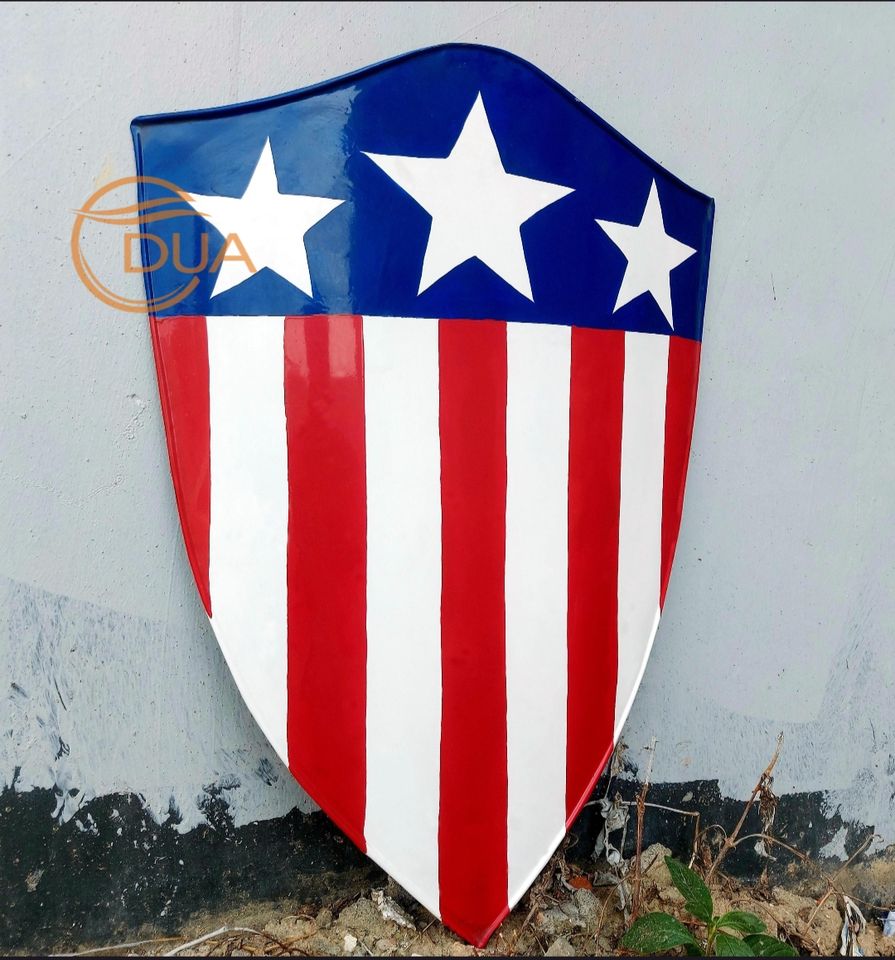 Handmade Cosplay Shield with Star Pattern and Stripe Design Durable Wall Decor or Costume Performance Accessor