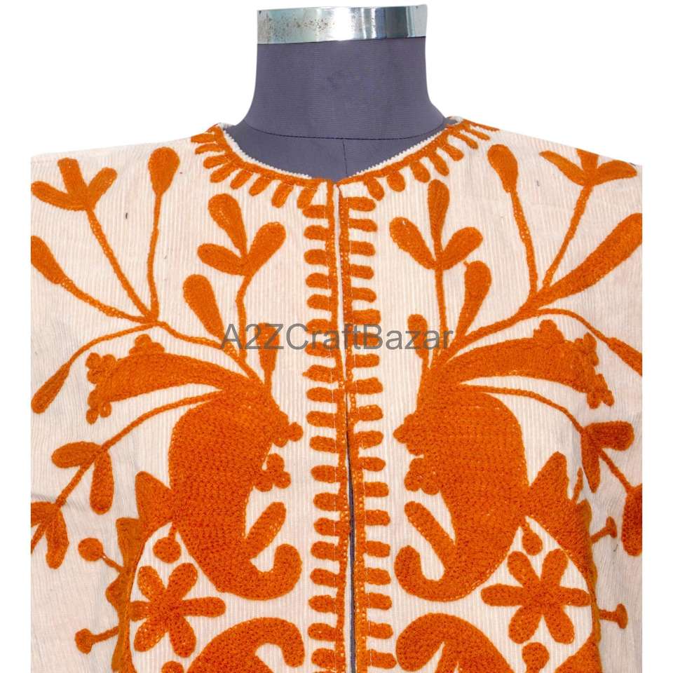 เสื้อกั๊กปักลายดอกไม้แบบซูซานีสำหรับผู้หญิง งานแฮนด์เมด คอร์ติส รุ่นเรกูลาร์ แขนตัดเย็บพิเศษ เหมาะสำหรับฤดูใบไม้ร่วง