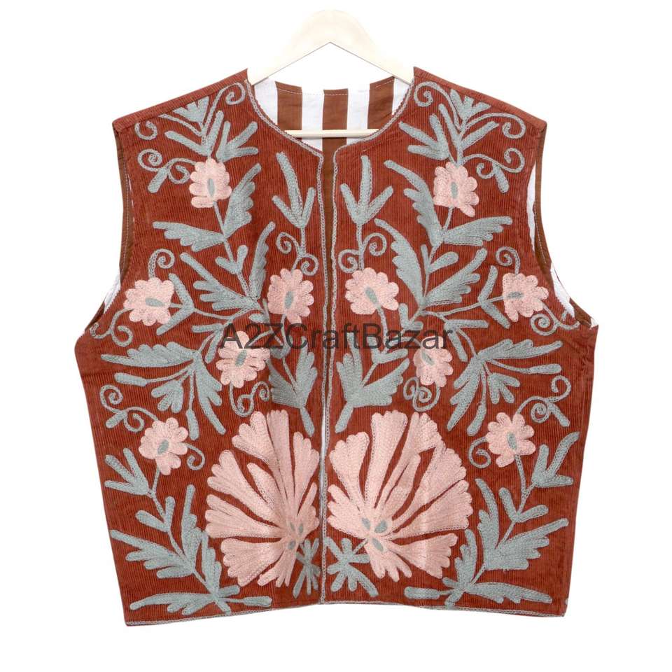 เสื้อกั๊กผ้าฝ้ายพิมพ์ลายดอกไม้สไตล์ซูซานี แขนตัดเย็บแบบเสื้อแจ็คเก็ต สำหรับผู้หญิง ทำมือ ผ้าฝ้าย 100% ระบายอากาศได้ดี เหมาะสำหรับฤดูใบไม้ผลิ/ฤดูใบไม้ร่วง
