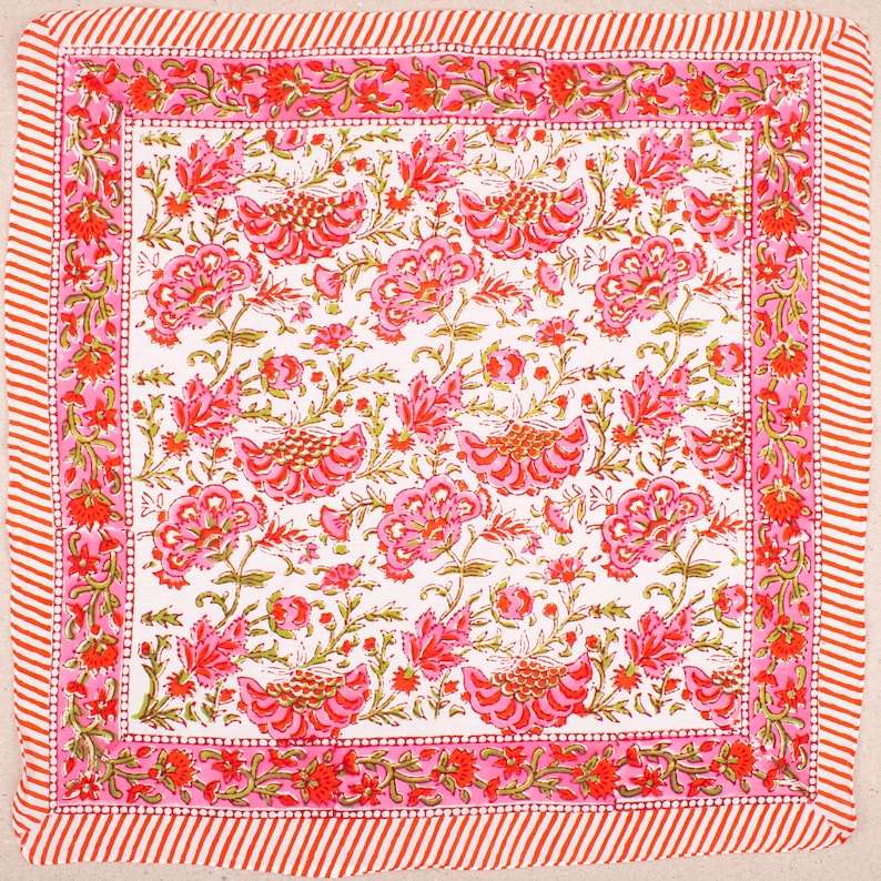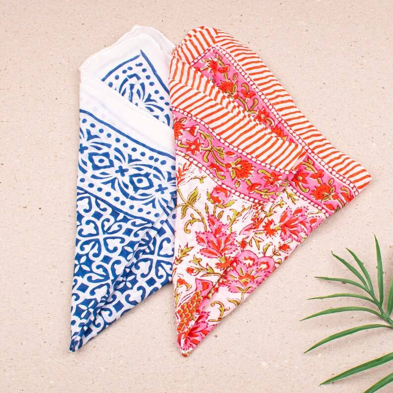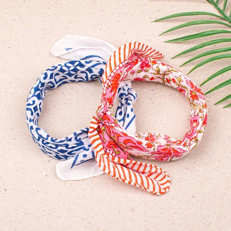 ผ้าพันคอผ้าฝ้ายทำมือ 2 ผืน ลายบล็อกสไตล์โบฮีเมียน น้ำหนักเบา ใช้ผูกคอ ผูกผม หรือใช้เป็นผ้าพันคอชายหาด