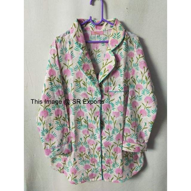 ชุดราตรีพิมพ์ลายบล็อกคอตตอนงานแฮนด์เมดชุดนอนแบบลำลองสำหรับฤดูใบไม้ร่วงฤดูหนาวชุดนอนสำหรับเพื่อนเจ้าสาวปรับแต่งได้ฤดูร้อน