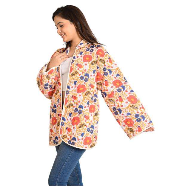 แจ็กเก็ตผ้าฝ้ายพิมพ์ลายดอกไม้แบบกลับด้านได้สำหรับผู้หญิงเสื้อหนาวสไตล์พื้นเมืองอบอุ่น