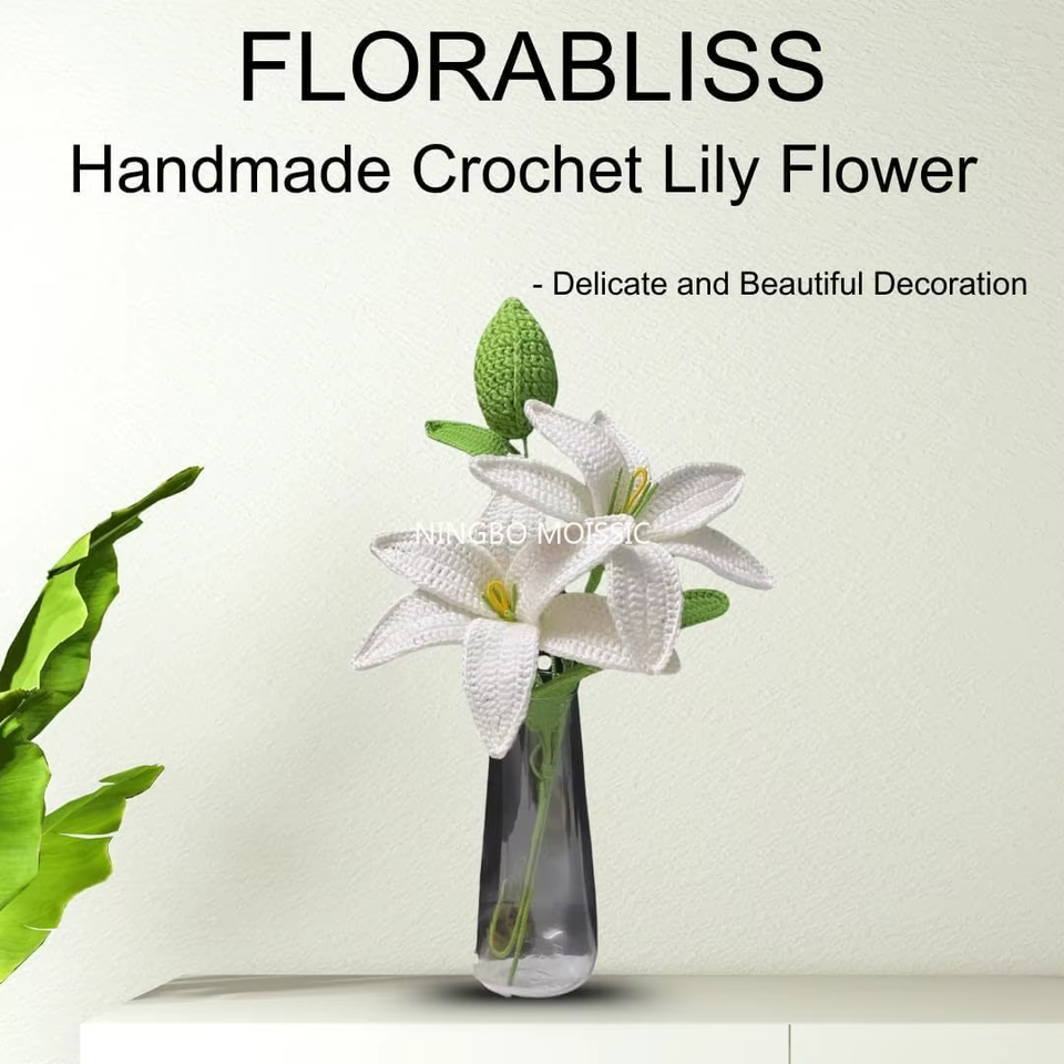 ดอกไม้ผ้าฝ้ายถักมือดอกลิลลี่ประดิษฐ์21ซม. ห้องครัวสำนักงานที่ไม่ซ้ำใครห้องนั่งเล่นห้องนอนของขวัญจบการศึกษาคริสต์มาส