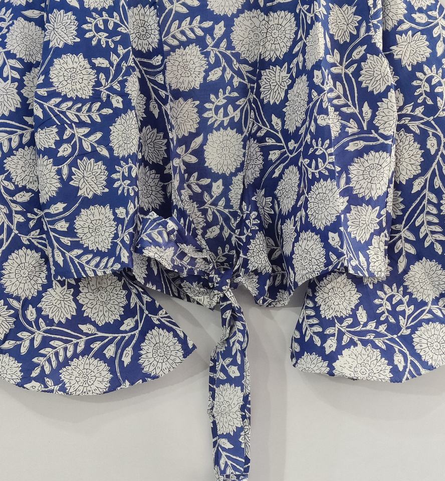 เสื้อครอปผ้าฝ้ายทำมือสำหรับผู้หญิงสไตล์โบฮีเมียนใส่ง่ายแขนยาวกระดิ่งพิมพ์ลายดอกไม้ชุดเสื้อผ้าเทรนด์ฤดูใบไม้ผลิฤดูร้อน