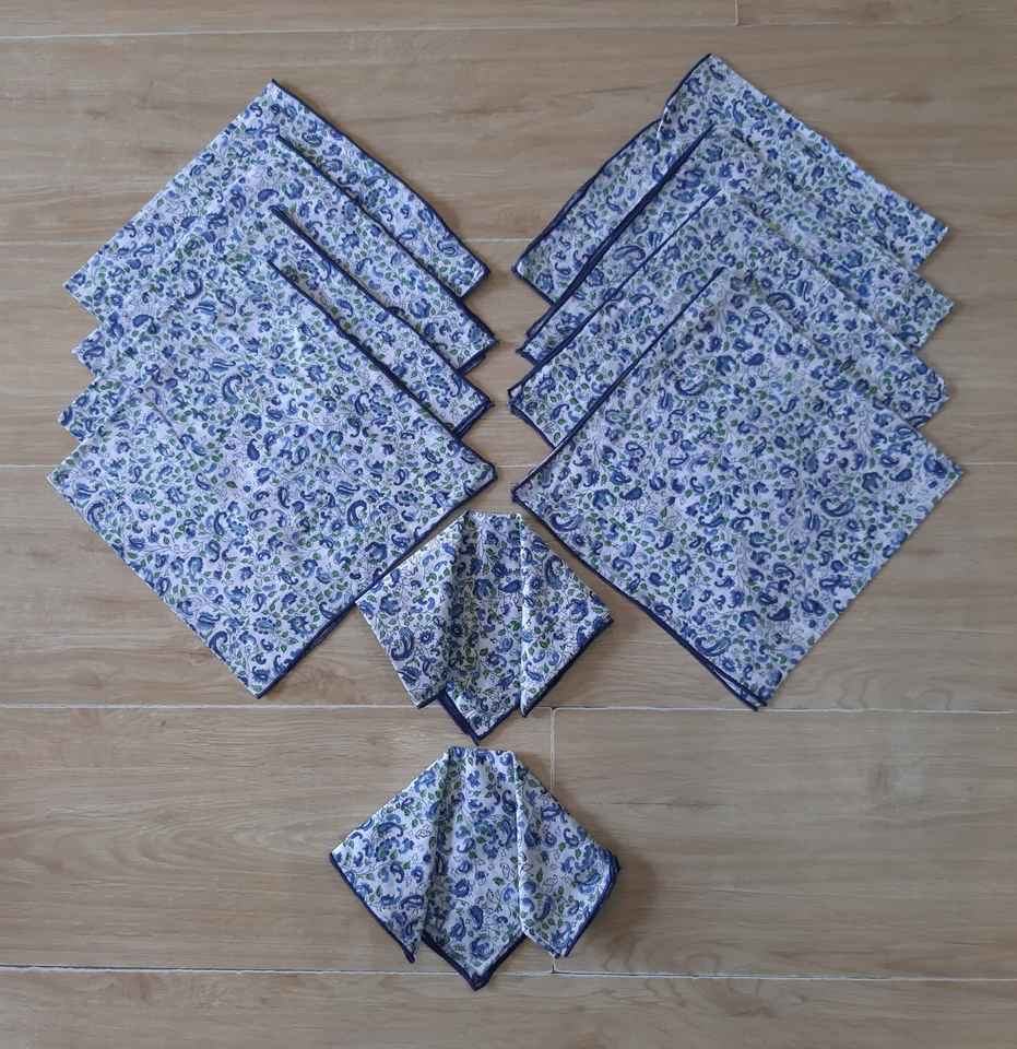 ผ้าเช็ดปากบนโต๊ะพิมพ์ลายบล็อกด้วยมือทำจากผ้าฝ้าย
