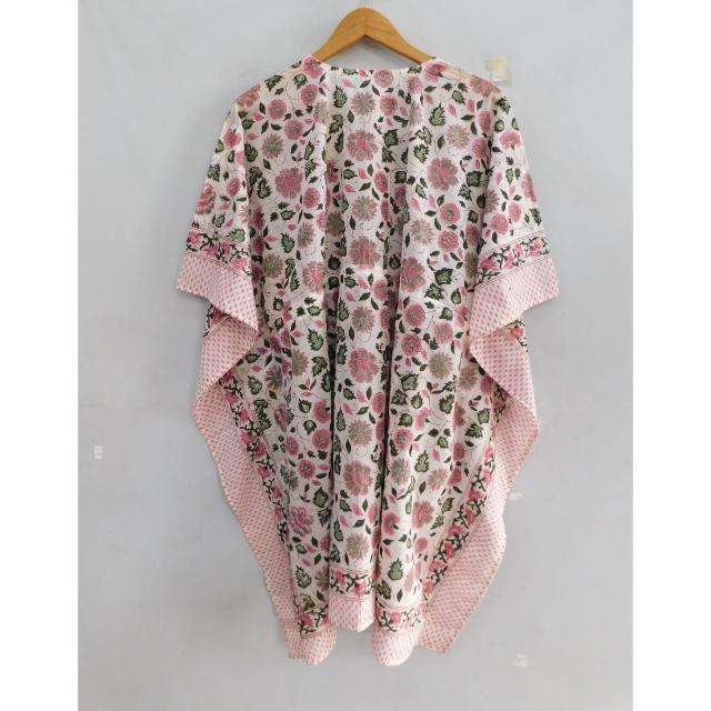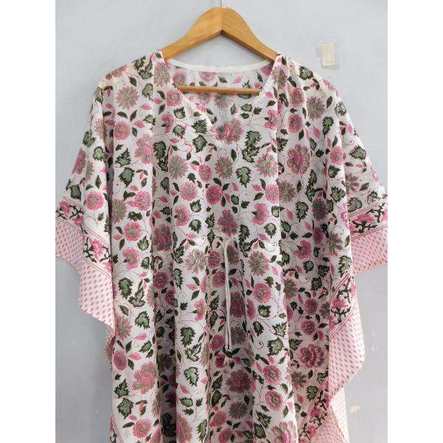 ชุดเดรสผ้าฝ้ายทำมือสไตล์โบฮีเมียน พิมพ์ลายบล็อก ชุดคลุมชายหาดทรงหลวม เสื้อคลุมลำลองสำหรับฤดูร้อน เหมาะสำหรับใส่ไปเที่ยวทะเลสำหรับผู้หญิง