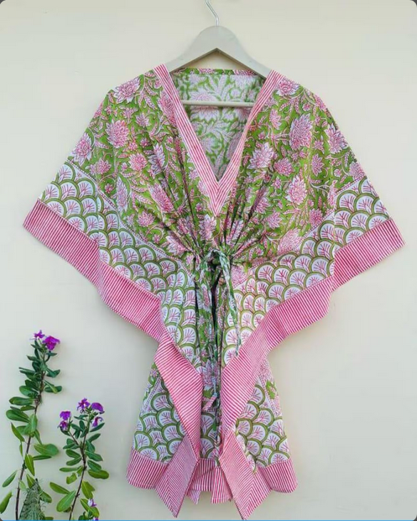 ชุดคลุมอาบน้ำแม็กซี่สไตล์คาฟตันทำจากผ้าฝ้ายทำมือชุดบิกินี่และชุดนอนใส่เดินชายหาดสำหรับบ้านและชายหาด
