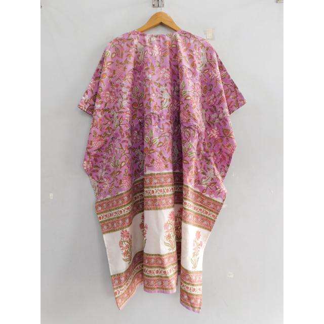 เสื้อคลุมผ้าฝ้ายทำมือพิมพ์ลายบล็อกสไตล์โบฮีเมียนชายหาด แขนทรงปีกค้างคาว คอวี ทรงปกติ ใส่สบายช่วงฤดูร้อน เป็นมิตรกับสิ่งแวดล้อม เอวธรรมชาติ