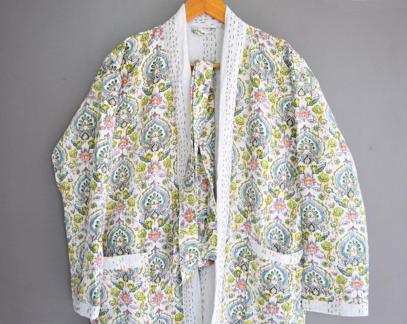เสื้อแจ็กเก็ต Kantha Kimono Varsity ผ้าฝ้ายทำมือสำหรับผู้หญิงที่มีน้ำหนักเบาสวมใส่กลางคืนในฤดูหนาวเสื้อคลุมและเสื้อโค้ททำมือ Kantha แจ็คเก็ต