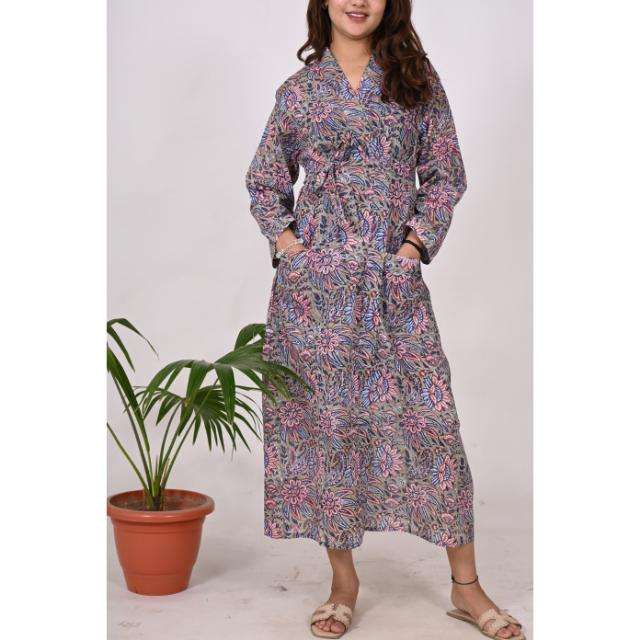 ชุดกิโมโนผ้าฝ้ายทำด้วยมือสำหรับผู้หญิงชุดนอนสไตล์อินเดียใส่ได้ทุกวันและชุดคลุมอาบน้ำงานปาร์ตี้สำหรับฤดูใบไม้ผลิ