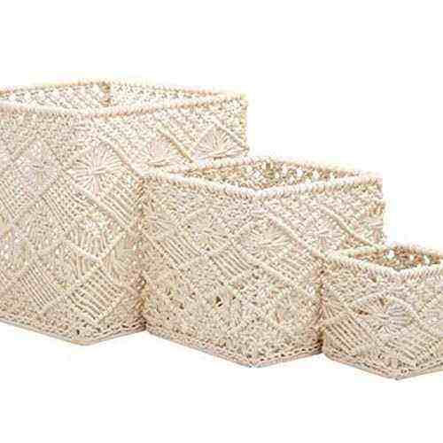 ตะกร้าใส่ของทำจากผ้าฝ้ายทำมือมาเรียพร้อมด้ามจับอุปกรณ์จัดระเบียบสำหรับตกแต่งบ้านห้องนอนหรือห้องนั่งเล่น