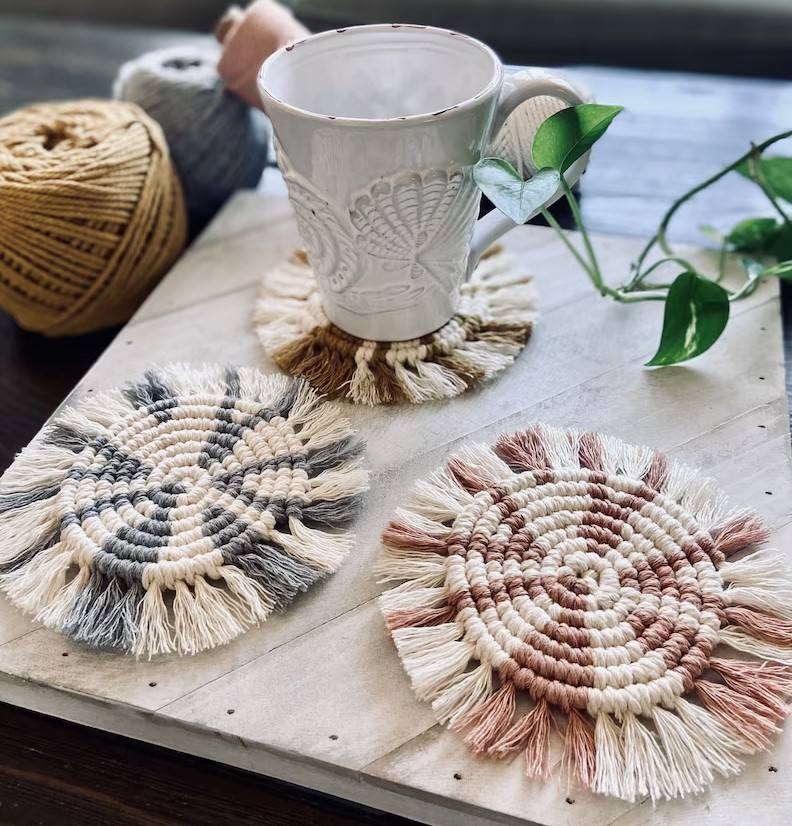 แผ่นรองแก้วชาทำมือจากเชือกฝ้ายสำหรับใช้ในสำนักงาน แผ่นรองแก้วเชือก ราคาขายส่งจากอินเดีย คุณภาพพรีเมียม