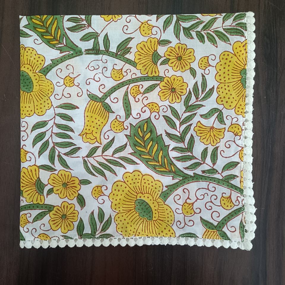 ชุดผ้าเช็ดปากคอตตอนทำด้วยมือทรงสี่เหลี่ยมพิมพ์ลายดอกไม้ปอมปอมตัดลูกไม้ผ้าเช็ดปากปรับแต่งได้สำหรับงานแต่งงานของขวัญคริสต์มาส