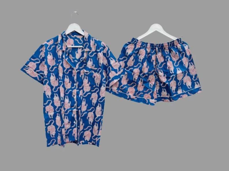 Handmade Cotton Pajama Shorts Set Comfortable Floral Nightwear for Home Sleepwear for Spring and Summer Perfect Gift for Her