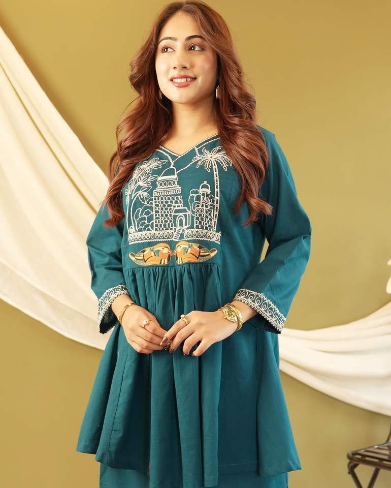 เซ็ตผ้าคอตตอนปักลายระดับพรีเมียมทำด้วยมือเซตเสื้อโคออร์ดทรงคลาสสิกเสื้อปักลายแฟนซีสวยงามพร้อมชุดคอร์ดล่าง