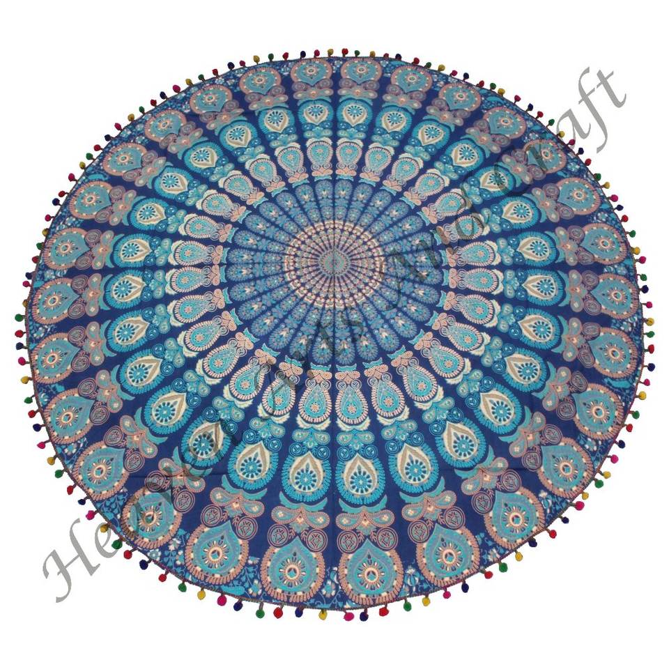 ผ้าทอพิมพ์ลายฝ้ายทำมือ ขายดี ผ้าทออินเดียลายมันดาลา ผ้าคลุมไหล่ทรงกลม ผ้าขนหนูชายหาดสไตล์ฮิปปี้ เสื่อโยคะลายมันดาลา ผ้าคลุมชายหาดลายมันดาลา