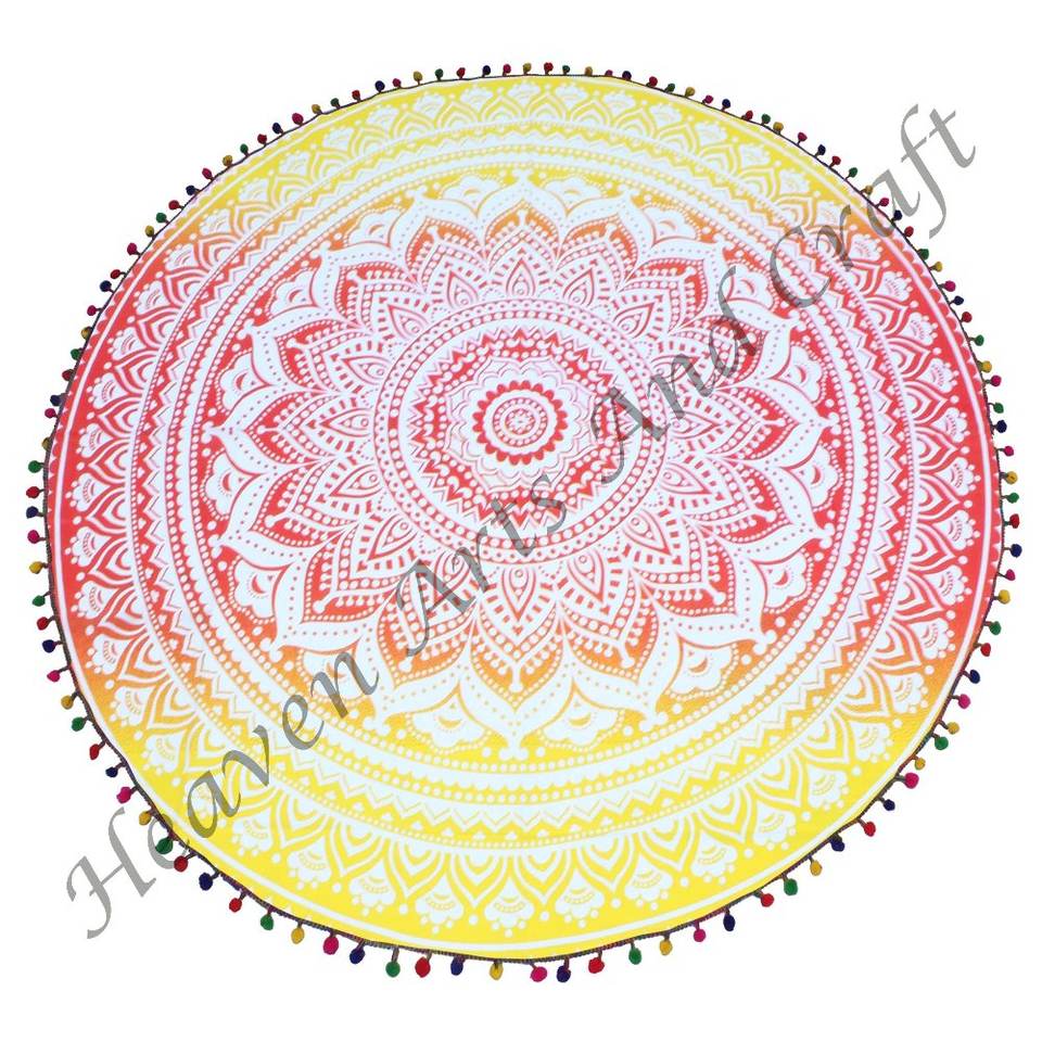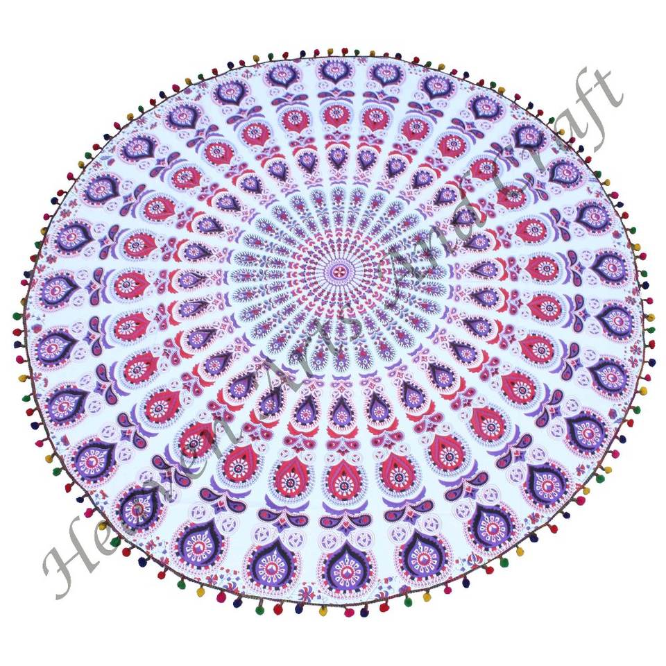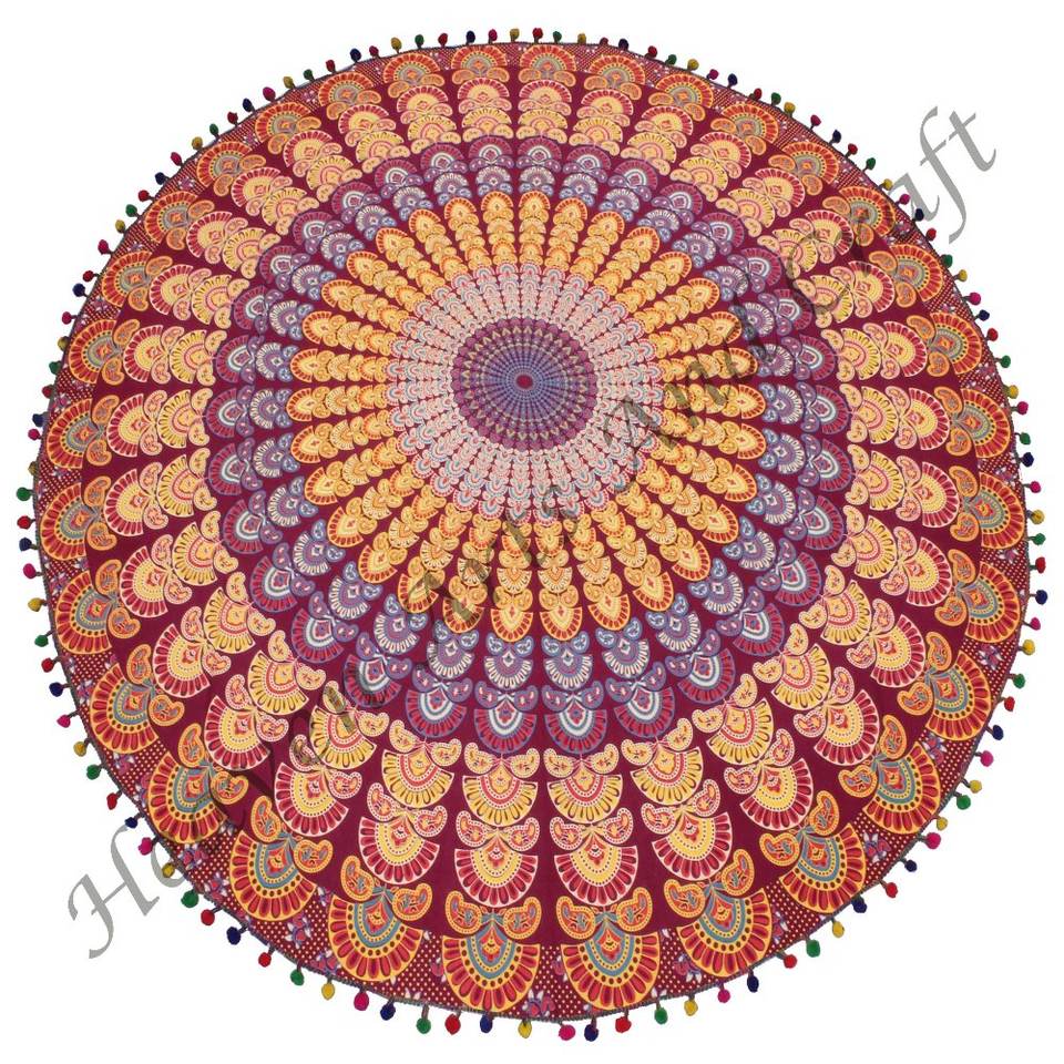 ผ้าแขวนผนังลายพิมพ์ผ้าฝ้ายทำมือ ลายแมนดาลา ทรงกลม สไตล์โบฮีเมียน ฮิปปี้ ตกแต่งห้องสไตล์อินเดีย