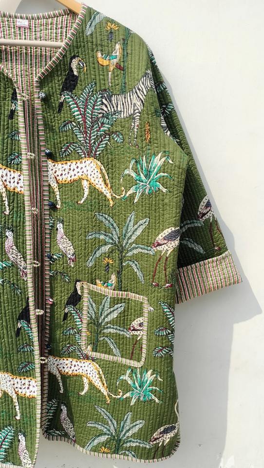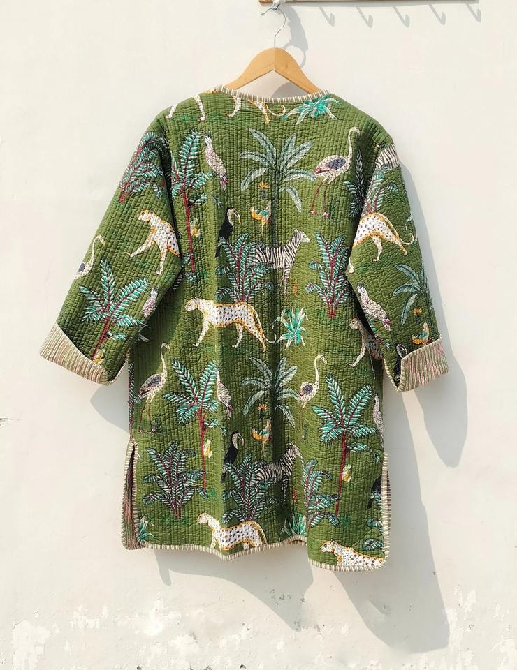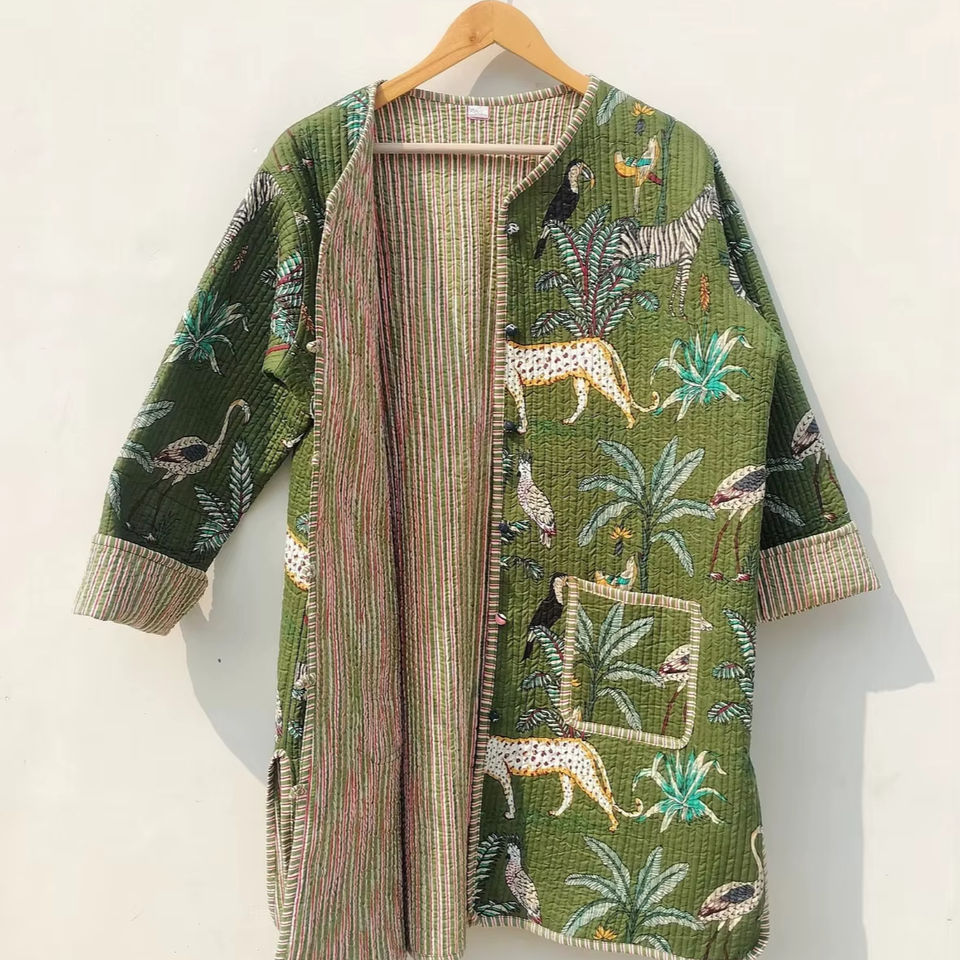 เสื้อแจ็กเก็ตผ้าฝ้ายเย็บปะติดแบบยาวเสื้อโค้ทผ้าฝ้ายเย็บด้วยมือออกแบบลายเย็บ