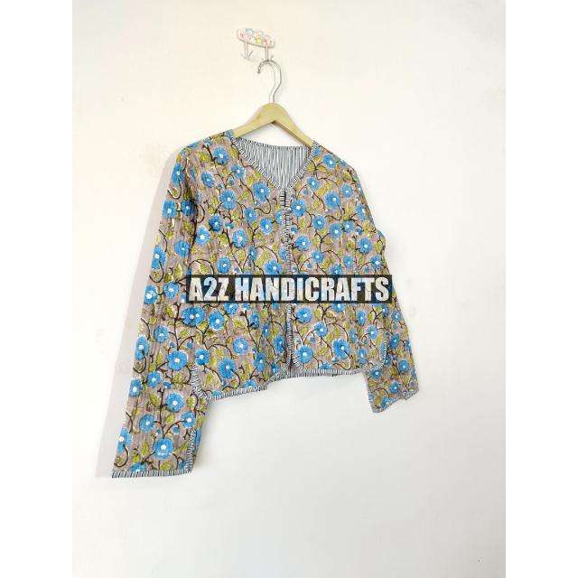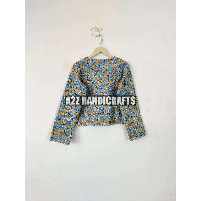 แจ็กเก็ตผ้าฝ้ายบุนวมทำมือสำหรับผู้หญิงดีไซน์เย็บปะติดสไตล์โบโฮพร้อมกระดุมปิดสำหรับของขวัญวันหยุด
