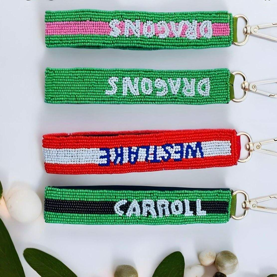พวงกุญแจสายคล้องข้อมือทำมือจากเม็ดฝ้ายและลูกปัดแก้ว เป็นมิตรกับสิ่งแวดล้อม ดีไซน์คลาสสิก สีสันปรับแต่งได้ ตัวอักษรสวยงาม หลากหลายแบบ