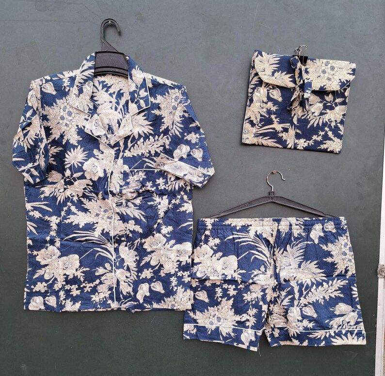 ชุดนอนแขนสั้นผ้าฝ้ายทำมือสำหรับผู้หญิงชุดลำลองฤดูร้อนพร้อมกระเป๋า