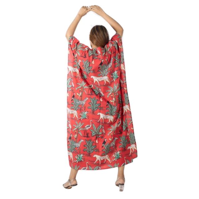 ชุดแม็กซี่ผ้าฝ้ายทำมือสำหรับผู้หญิงชุดเดรสยาวอาบายาพิมพ์ลายป่าสไตล์หวานชุดใส่ชายหาดซักได้ฟรีไซส์