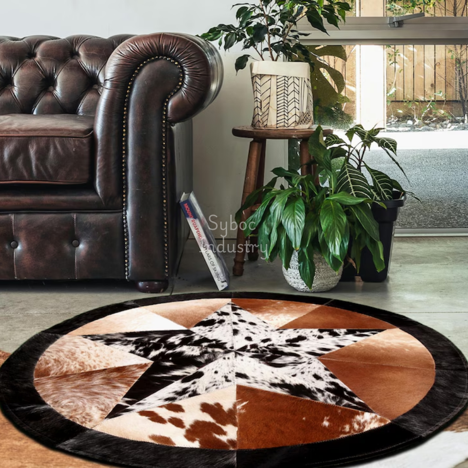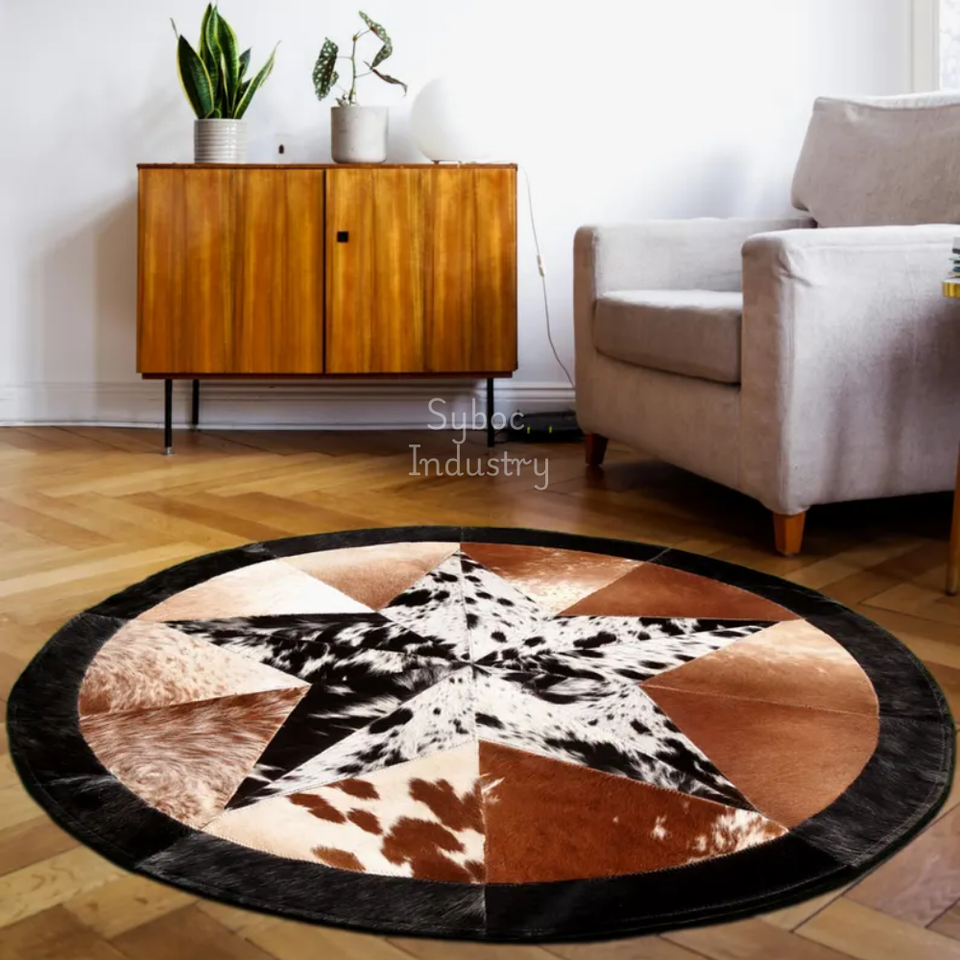 พรมหนังวัวทำมือพร้อมขนวัวแท้บนแผ่นหนังแผ่นหนังพรมทำงานสำหรับห้องนั่งเล่นหนังดิบ