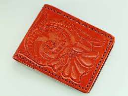 กระเป๋าสตางค์ผู้ชายหนังแท้คาวบอยทำด้วยมือลายดอกไม้แบบตะวันตกพร้อมสลักด้วยมือล่าสุด